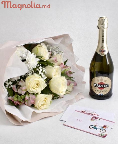Set 50: Spumant,Buchet cu 7 Trandafiri și Flori de Sezon | 873lei